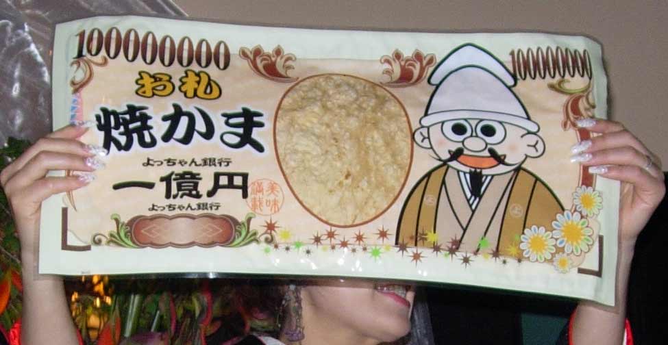 そしてからしシュークリームを食べたご褒美に、何と駄菓子の定番!”よっちゃんいか”が無茶苦茶でかくなった、一億円札になっている”よっちゃんいか”のお菓子を貰いました!(これもまた後日オレのサービスエリアオタク編ブログにて公開します!)