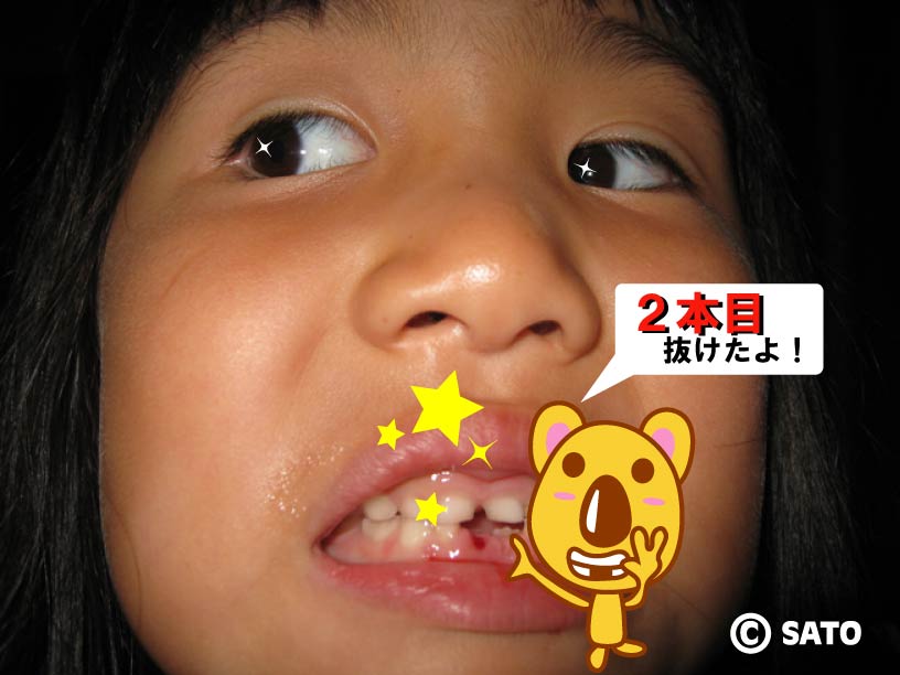 アン:「あのねぇ~歯がねぇ~ピーンって抜けたの!」って歯が飛んで行く感じで教えてくれました。アンビの中では歯が飛んで行った感じだったみたい!